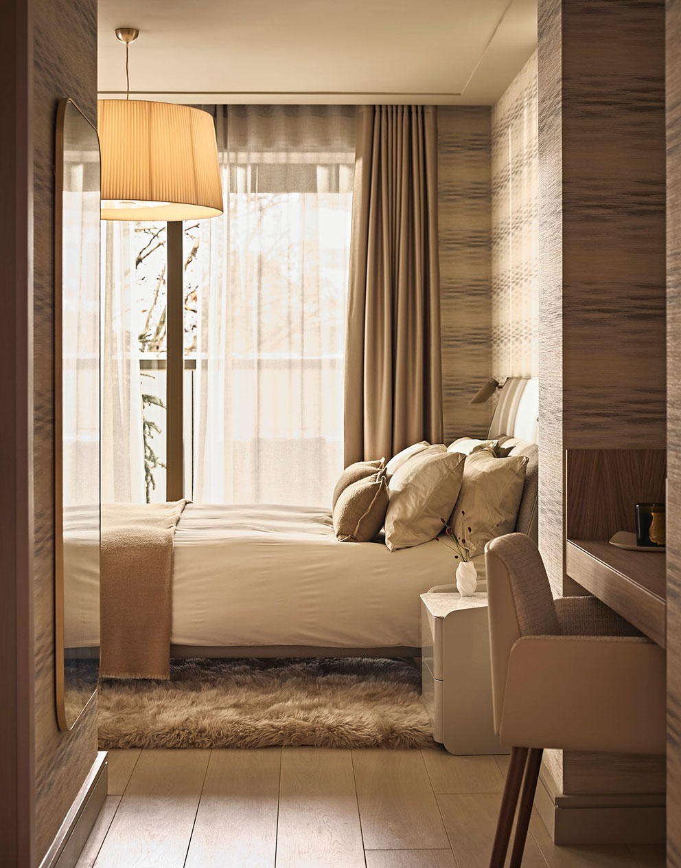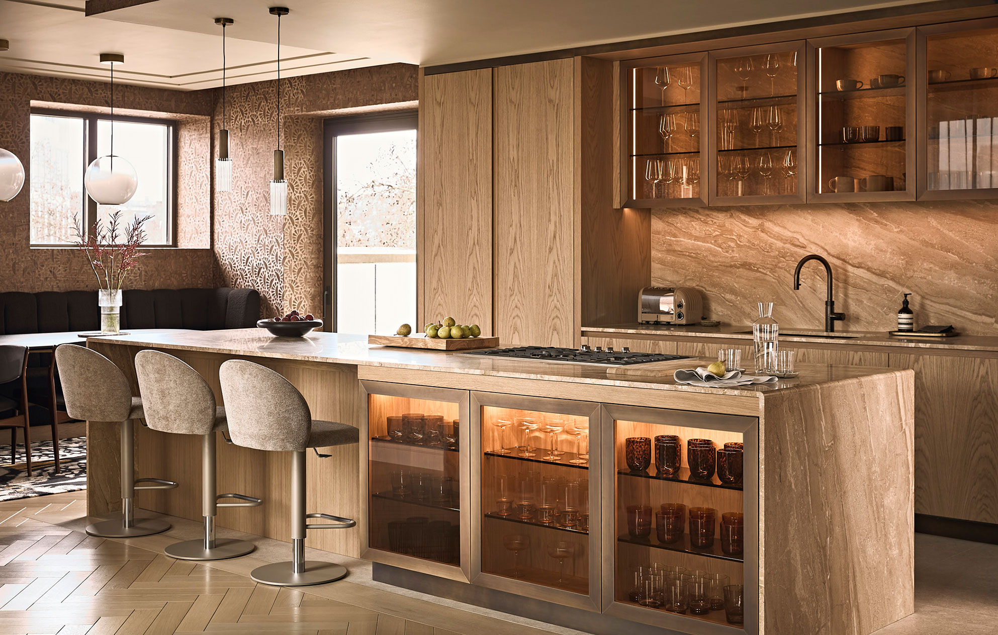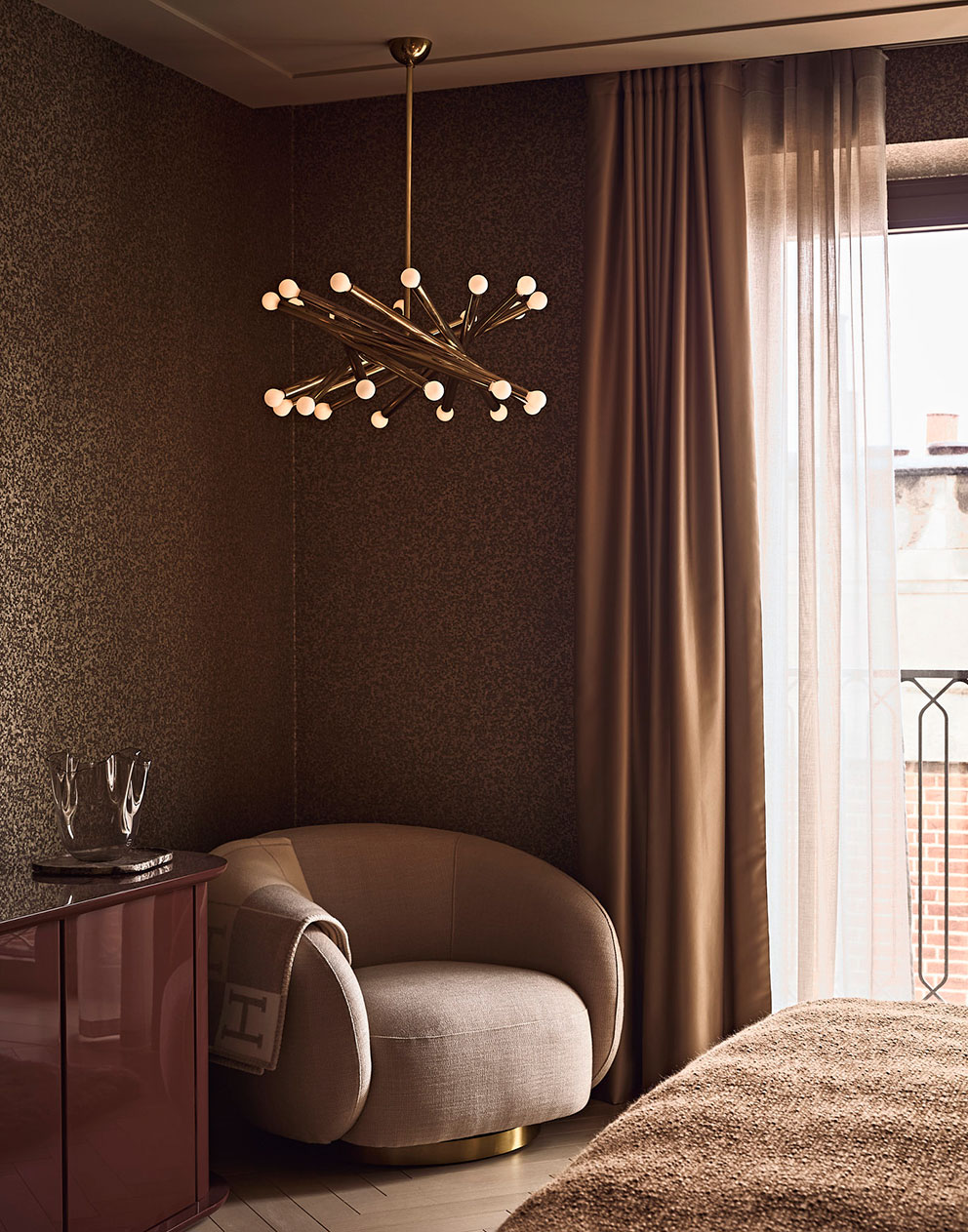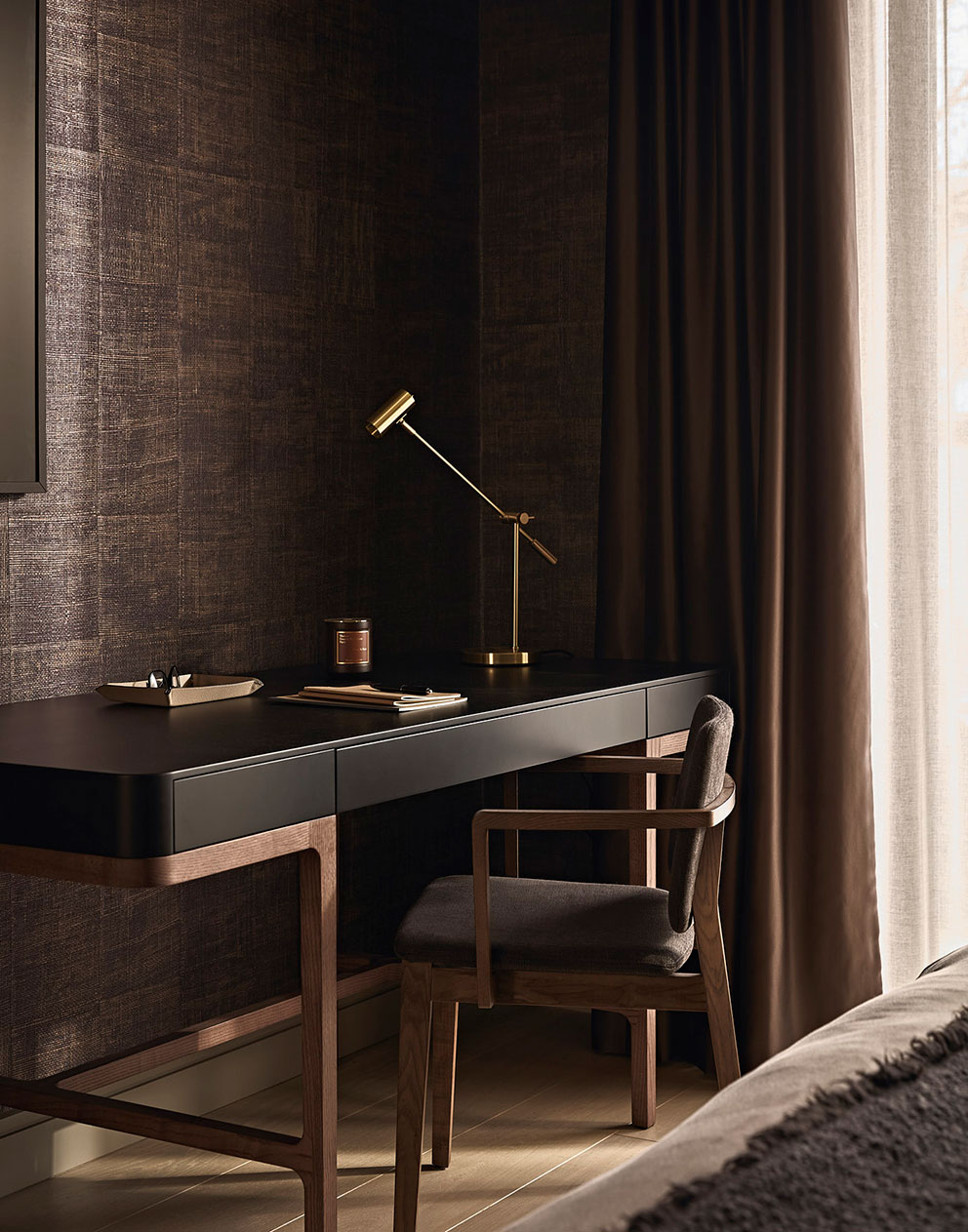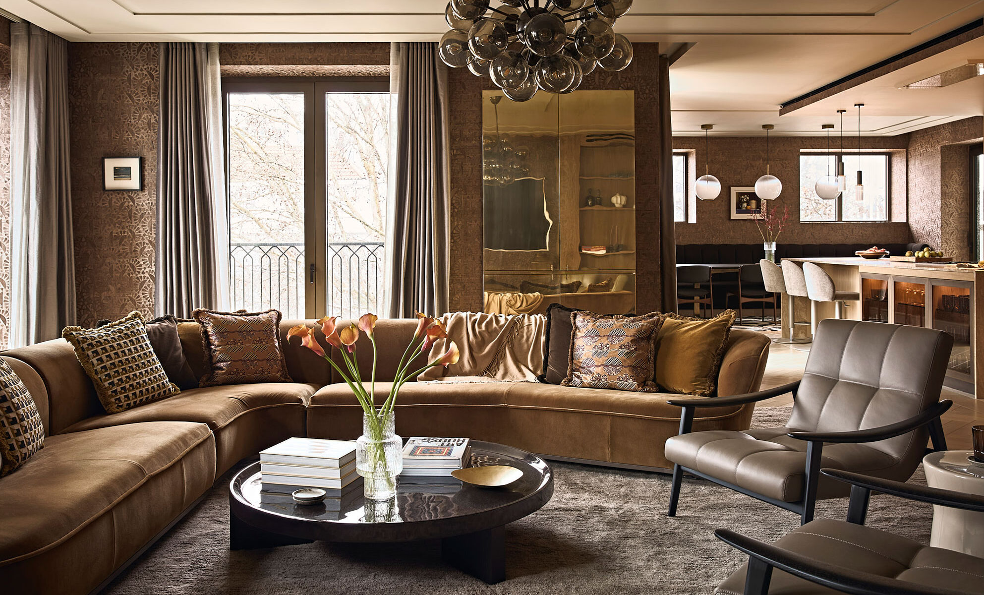 This Pied-à-Terre reimagines an apartment originally completed to a developer’s specification, transforming it into a richly personal home inspired by 1970s luxury. Designed for a client with a strong appreciation for texture and materiality, the scheme layers tactile finishes with striking marble to create depth and visual interest. The space was carefully considered to support entertaining and bring the family together, resulting in a beautifully moody and inviting environment, tailored to the client’s way of living.